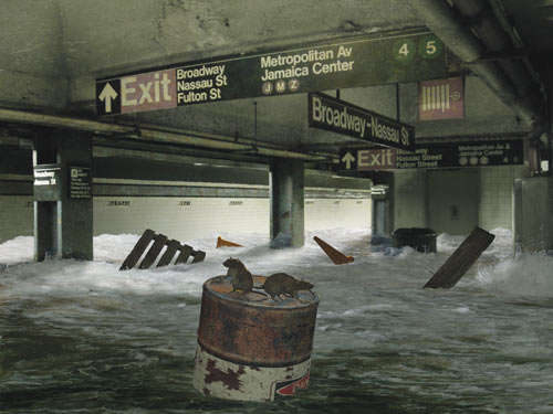 沒有了持續(xù)工作的抽水系統(tǒng),紐約市的地鐵已完全浸沒在水中。