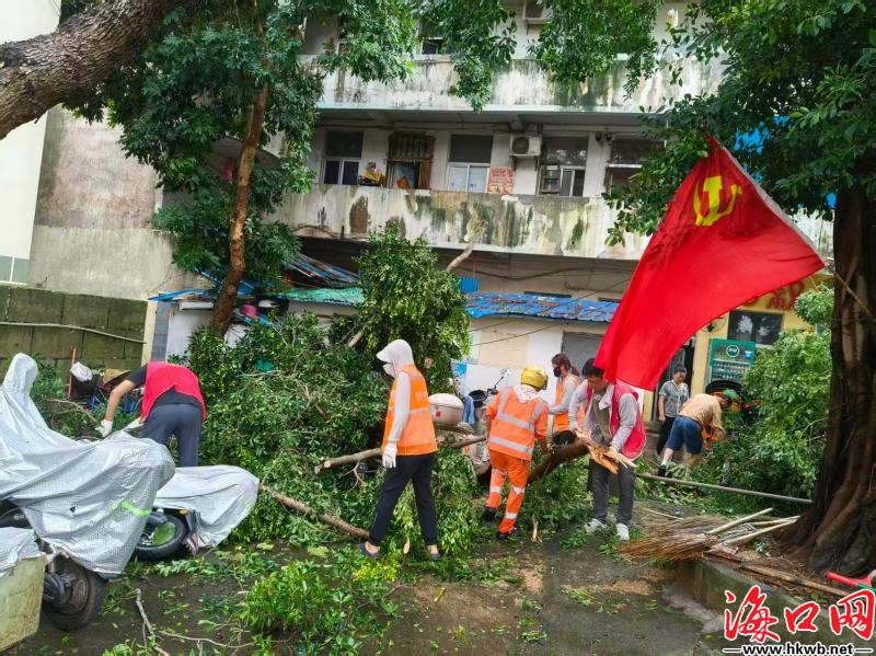 在海墾街道,街道工委迅速啟動應(yīng)急機(jī)制,組織起包括區(qū)級掛點(diǎn)單位、共建單位,社區(qū)干部、環(huán)衛(wèi)工人及志愿者等約1050人的隊(duì)伍。在清障現(xiàn)場,黨員干部與志愿者分工明確,默契配合,有序清理斷枝落葉、搬移倒伏廣告牌、疏通排水口。截至10月6日12時(shí),海墾街道清理倒伏樹木48棵、清運(yùn)垃圾400噸,轄區(qū)主次道路基本恢復(fù)通暢整潔。