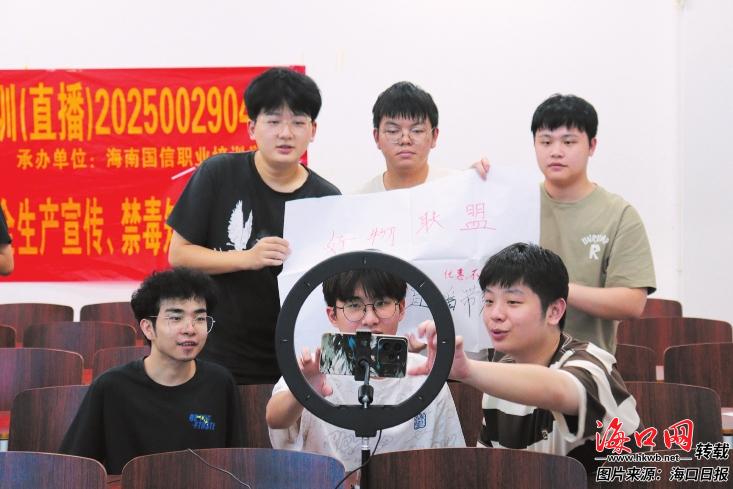 10月14日晚,在??诮?jīng)濟學(xué)院,學(xué)員們分小組進行直播實踐。 記者 趙汶 攝