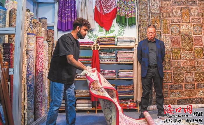 “今年的冬交會(huì)比去年隆重很多,產(chǎn)品也更豐富精致了?!边B續(xù)兩年逛展的觀眾王羲元拿起一盒火巖斛健齒牙膏細(xì)細(xì)端詳,并為??谵r(nóng)產(chǎn)品的創(chuàng)新升級(jí)點(diǎn)贊,“能明顯感覺(jué)到企業(yè)參與熱情更高,知名品牌更多,大家對(duì)封關(guān)運(yùn)作滿(mǎn)懷期待,都想搶占自貿(mào)港紅利?!?/p> 12月4日,第28屆冬交會(huì)巴基斯坦展館,工作人員在介紹特色產(chǎn)品。康登淋 攝