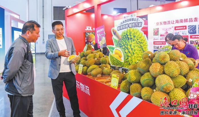 不僅??陴^,其他展館的??谄髽I(yè)同樣亮點(diǎn)頻出。在1號(hào)館,海南豐觀實(shí)業(yè)集團(tuán)有限公司帶來(lái)的氣調(diào)保鮮馬來(lái)西亞進(jìn)口貓山王榴蓮,一亮相就成為焦點(diǎn)。工作人員現(xiàn)場(chǎng)切開(kāi)榴蓮,金黃果肉香氣四溢,“通過(guò)氣調(diào)柜技術(shù)精準(zhǔn)控溫控氣,實(shí)現(xiàn)‘原產(chǎn)地口感零差別’,讓榴蓮從樹(shù)梢到餐桌都能保持最佳風(fēng)味?!痹摴倦娚滩靠偨?jīng)理張志鵬熱情介紹,借助“專(zhuān)業(yè)洽談+網(wǎng)紅直播+美食品鑒”模式,該公司的進(jìn)口榴蓮已對(duì)接全國(guó)多家重點(diǎn)果蔬批發(fā)市場(chǎng)和連鎖商超,直播頻道訂單不斷,成了冬交會(huì)上的“爆款”。