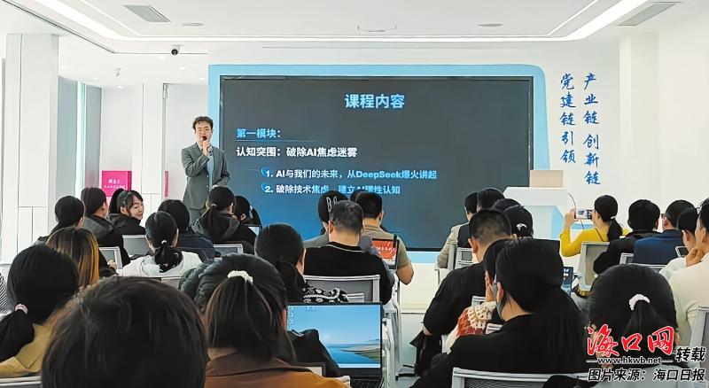 這樣的場景是秀英街道持續(xù)探索“黨建+AI”模式的生動縮影?!敖衲?月,我們聯(lián)合團秀英區(qū)委,依托‘小新助企’服務項目開展DeepSeek專題培訓,為‘黨建+AI’工作打牢基礎?!毙阌⒔值老嚓P負責人告訴記者,“人工智能+”系列培訓主要面向轄區(qū)企業(yè)職工與黨員,系統(tǒng)講解人工智能基礎原理、生成式AI工具操作方法,以及“AI+辦公”“AI+學習”等實用場景應用。