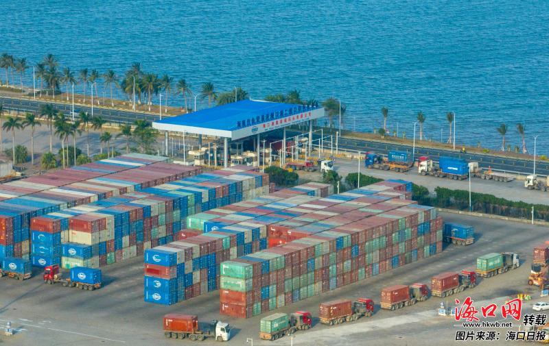 1月19日,大貨車有序通過海口港秀英港區(qū)集裝箱碼頭海關(guān)監(jiān)管通道智能卡口。
